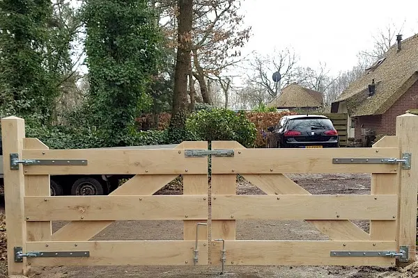 De platen hebben een afmeting van 185 x 70 mm en zijn voorzien van 6 gaten. Wij adviseren om deze vast te zetten met de meegeleverde schroeven van 5mm dik. De hendel heeft een lengte van ca. 375 mm. De overslaggrendel gemonteerd op je poorten heeft een totale breedte van ca. 45 cm (afhankelijk van de positie op je poorten en de afstand tussen je poorten).