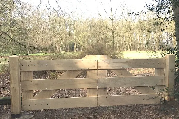 Op zoek naar een robuust houten poort voor jouw erf, tuin, weiland of oprit? De LK03-R is een typisch landhek gemaakt van eikenhout. Dit model is gelijk aan de LK03 alleen zijn de verticale planken en de schoor aan de achterkant bevestigd. Je kijkt dus tegen de drie brede horizontale planken aan. De middelste verticale planken van het houten hek steken iets uit.